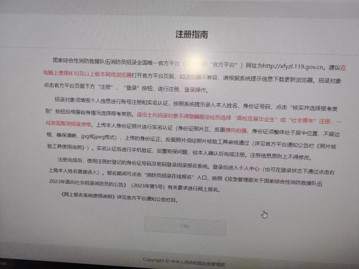 點(diǎn)擊進(jìn)入后按下圖順序先注冊(cè),再登錄。開始按耍求上傳個(gè)人信息。報(bào)名分三個(gè)端口,1、退伍軍人。2、高校畢業(yè)生。3、社會(huì)青年。學(xué)員可認(rèn)真看招聘公告,根據(jù)公告標(biāo)誰(shuí)要求選自己符合對(duì)應(yīng)的標(biāo)準(zhǔn),主要是年齡和學(xué)歷。根據(jù)自己的戶籍地點(diǎn)擊報(bào)名省份和所在城市。確認(rèn)無(wú)誤后在點(diǎn)擊申請(qǐng)發(fā)送,報(bào)名只有一次修改機(jī)會(huì)!高中學(xué)歷22歲以下,大專學(xué)歷24歲以下,本科26歲以下。政審?fù)ㄟ^(guò)均可報(bào)名!