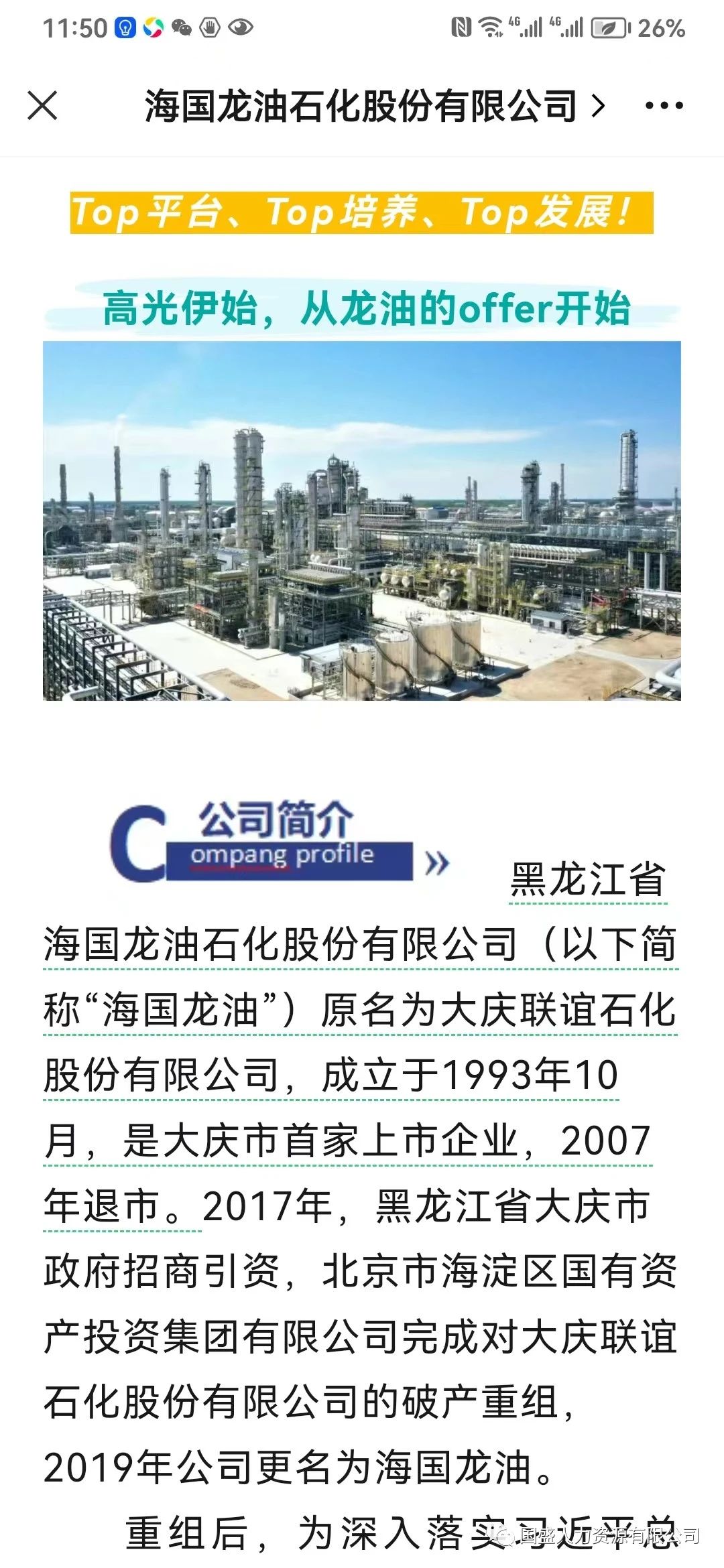 17、黑龍江海國龍油石化招聘:待遇優(yōu)厚,全市通勤車,食堂宿舍。工作地點(diǎn):大慶林源化工園區(qū)!