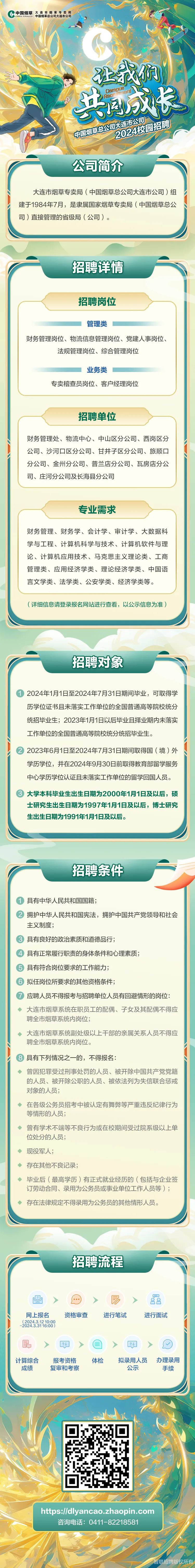 中國煙草總公司大連市公司2024校園招聘開始報名