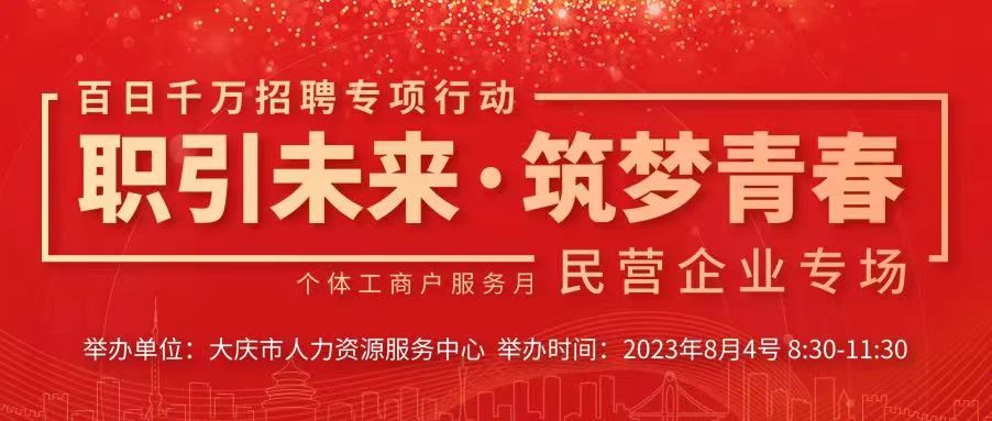 為全面落實(shí)穩(wěn)就業(yè)、保就業(yè)工作任務(wù),促進(jìn)高校畢業(yè)生、廣大進(jìn)城務(wù)工人員、城鎮(zhèn)失業(yè)人員、低收入人口等重點(diǎn)群體高質(zhì)量、充分就業(yè),解決企業(yè)用工需求。8月4日上午,由大慶市人力資源和社會(huì)保障局主辦,大慶市人力資源服務(wù)中心承辦的“職引未來 筑夢(mèng)青春”——百日千萬招聘專項(xiàng)行動(dòng)個(gè)體工商戶服務(wù)月?民營企業(yè)專場招聘會(huì),在市人力資源服務(wù)中心一樓招聘大廳成功舉辦。