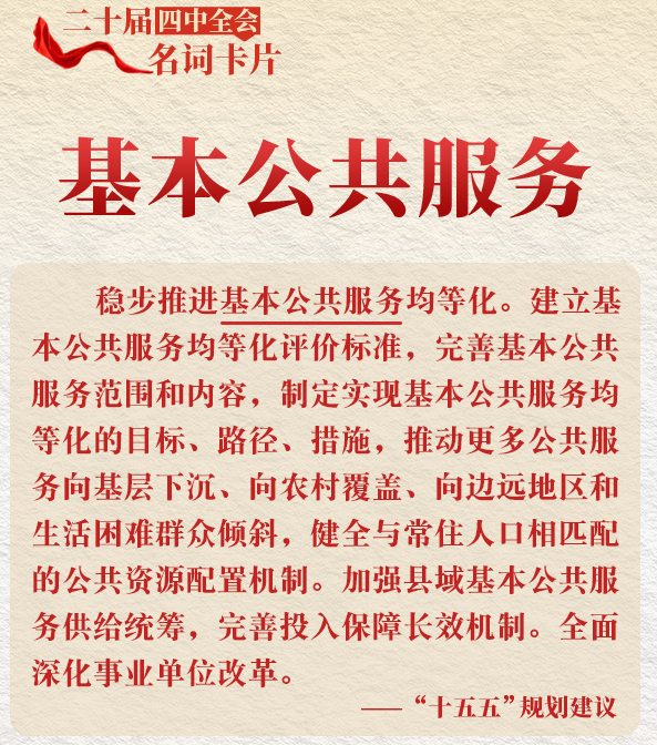 ??四是加大基本公共服務(wù)保障力度。強(qiáng)化基本公共服務(wù)中央事權(quán)和支出責(zé)任,合理提高基本公共服務(wù)支出占財(cái)政支出比重,構(gòu)建多元供給格局,完善基本公共服務(wù)均等化投入保障長(zhǎng)效機(jī)制。(據(jù)《黨的二十屆四中全會(huì)<建議>學(xué)習(xí)輔導(dǎo)百問(wèn)》)